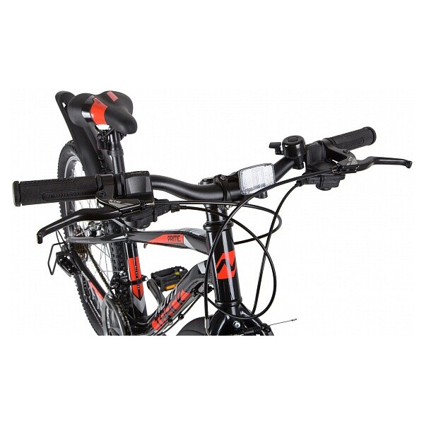 Горный велосипед Tornado 21.V - самый желанный подарок для любого подростка, ведь он так похож на взрослый байк и неспроста! Амортизационная вилка ходом 40 мм позволит комфортно кататься по пересеченной местности и лесу, двойные алюминиевые обода помогут избежать восьмерок на колесах, а классические тормоза типа V-Brake не доставят хлопот. На велосипеде установлена трансмиссия на 21 скорость, именно поэтому байк подойдет даже для самых притязательных ребят. Данная модель выпускается в двух цветах черный и красный. На колесах установлены эксцентриковые зажимы, что позволяет быстро и без дополнительного инструмента снять колеса в случае необходимости.