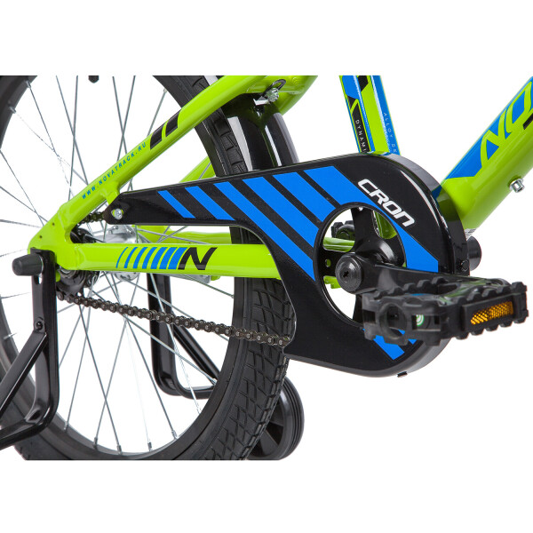 NOVATRACK CRON 20 - модель предназначена для детей 7-10 лет и одинаково нравится как мальчикам, так и девочкам. Установлена защита цепи, которая, в том числе, является важным элементом дизайна, стильные укороченные крылья, съемные дополнительные колеса, звонок и катафоты. Сидение очень просто и быстро регулируется при помощи надежного фиксатора, высоту и наклон руля также можно отрегулировать для удобной посадки.