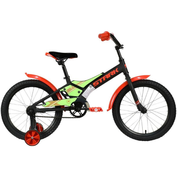 Велосипед Stark Tanuki 18 Boy без переключения передач оптимально подходит для обучения детей от 3-х до 6-ти лет навыкам самостоятельной езды. Страховочные колесики помогают удерживать равновесие и придают уверенности во время движения. Для комфортной управляемости в конструкции предусмотрена жесткая стальная вилка и ножной тормоз.