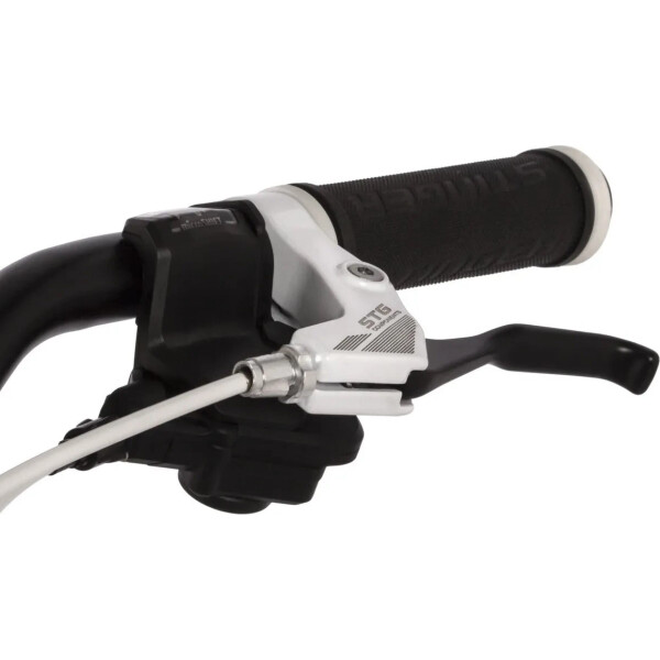 Установлено все необходимое оборудование для комфортного катания: трансмиссия состоит из 18 передач, руль регулируется по высоте, установлены классические ободные тормоза типа V-brake, используются двухцветные универсальные покрышки шириной 2.0 дюйма.