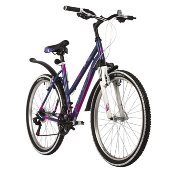 Велосипед Stinger Latina 26 (2022), рама 17, фиолетовый (26SHV.LATINA.17VT2) подходит для приобретения подросткам и взрослым. Модель является женской, что обусловлено особой геометрией рамы и дизайном. Транспортное средство имеет регулируемый подъем руля. За счет этого пользователь может установить оптимальные параметры в соответствии с ростом, что способствует удобству в процессе катания. Жесткое седло обладает анатомической формой, благодаря чему не вызывает дискомфорта при продолжительных велопрогулках.