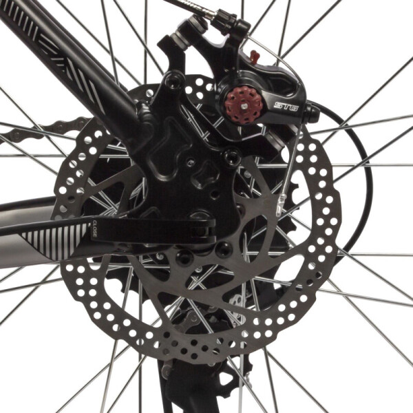 STINGER GRAPHITE STD - это младшая комплектация нашей мужской модели из среднего ценового сегмента. Основные отличия от старшего собрата GRAPHITE EVO пружинная вилка, механические дисковые тормоза и немного упрощенная трансмиссия. Модель собрана на полностью идентичной раме с набором современных технических решений трубы с ребрами жесткости, внутренняя прокладка тормозных гидролиний и тросов переключения, полуинтегрированная рулевая колонка. Вилка без блокировки из линейки STG имеет полноценные сальники и направляющие из твердого полимера. Трансмиссия с системой на 3 звезды и восьмискоростной кассетой HG200 реализована на компонентах Shimano. Велосипед выпускается в современном стандарте с прогрессивной геометрией, что позволяет сформировать широкий выбор под разный рост райдера.