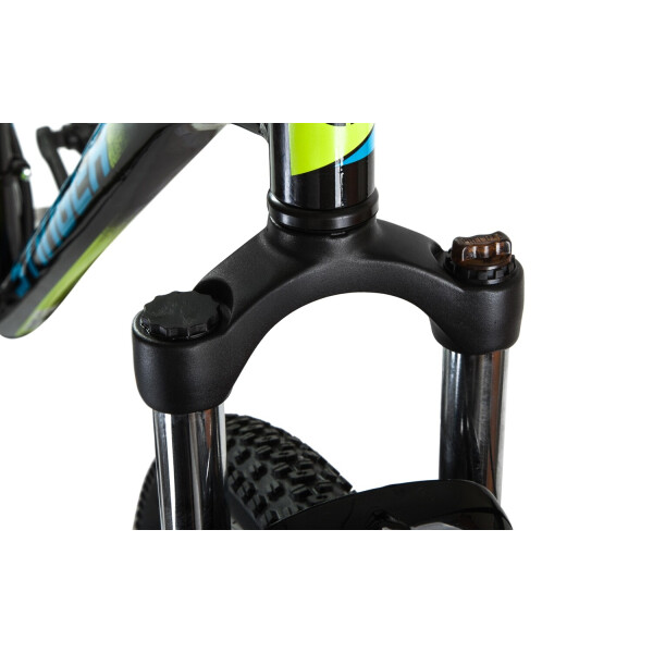 вилка пружинного типа с ходом в 100 мм, которая прекрасно сглаживает все ухабы и неровности трассы;