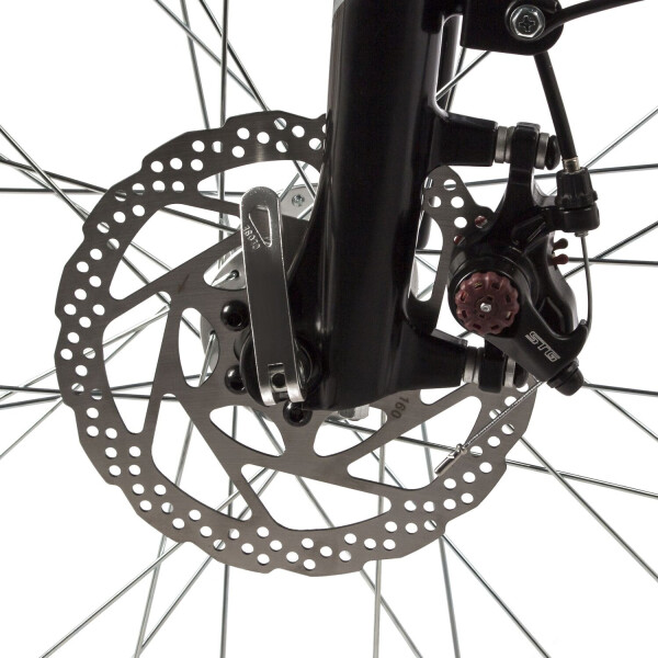 Тормоза дисковые механические неприхотливые и прекрасно справляются с торможением, а также полноразмерные крылья и багажник делают этот велосипед универсальным и очень надежным.