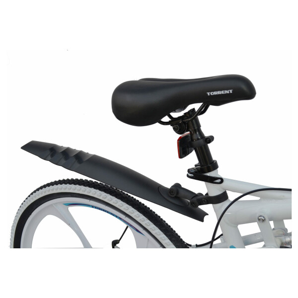 Велосипед оснащен светоотражателями, боковым центральным упором для парковки и стильными пластиковыми крыльями.