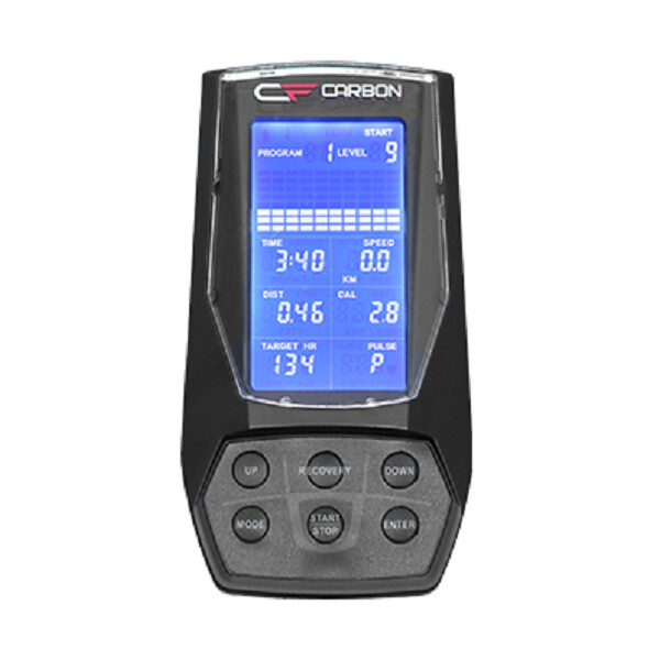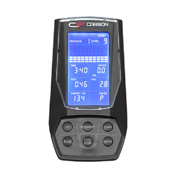 Многофункциональный голубой LCD-дисплей U818 MAGNEX - это небольшой компьютер, который имеет "на борту" массу полезного функционала. На выбор представлены 9 разноплановых встроенных программ, в которых используются различные виды тренировок - холмы, долина, сжигание жира, подъем в гору, выносливость, интервальная тренировка, циклическая тренировка, плато, равнина. Для каждой из встроенных программ можно выставить цели в виде дистанции, времени и количества сжигаемых калорий - при достижении одного из этих показателей тренировка завершится. Есть здесь и ручной режим, где пользователь самостоятельно регулирует уровни нагрузки в процессе занятия. На экран компьютера выводятся различные параметры - непосредственно профиль программ, скорость, время, дистанция, обороты в минуту, калории, пульс, Ватты, одометр, возраст и жироанализатор (Body Fat). По завершении тренировки функция Recovery оценит способность сердечно-сосудистой системы к восстановлению.