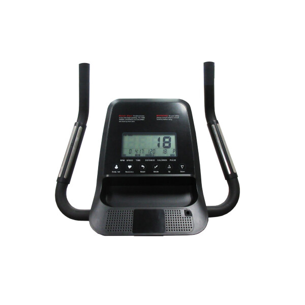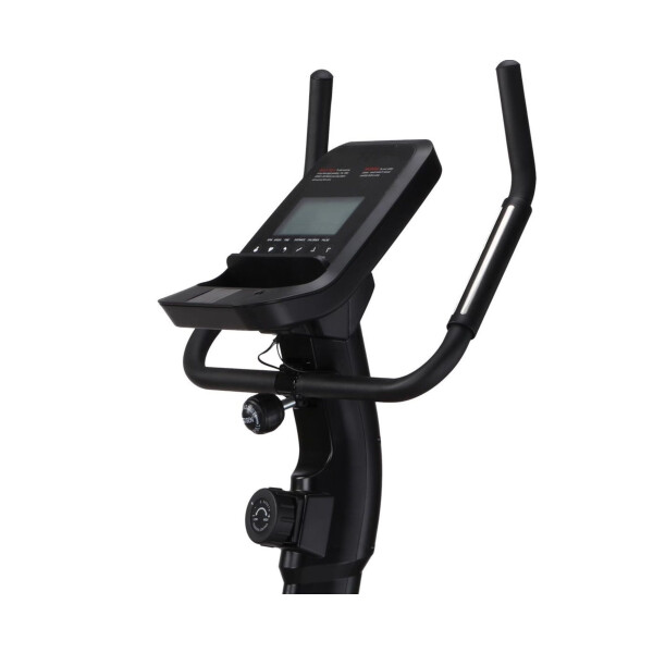 Консоль. На консоли предусмотрен держатель для планшета и встроенный монохромный LCD дисплей. На нём отображаются параметры: скорость, пульс, время занятия, пройденное расстояние, калории.