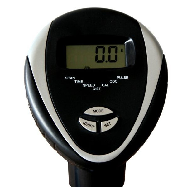 Компьютер с LCD дисплеем прост в управлении, и отображает все основные параметры тренировки время, пройденную дистанцию, скорость, расход калорий, обороты в минуту и пульс, что позволяет эффективно контролировать весь процесс тренировки. Сенсорные датчики съема пульса вмонтированы в руль тренажера. Нагрузка регулируется механическим путем в 8 положениях.