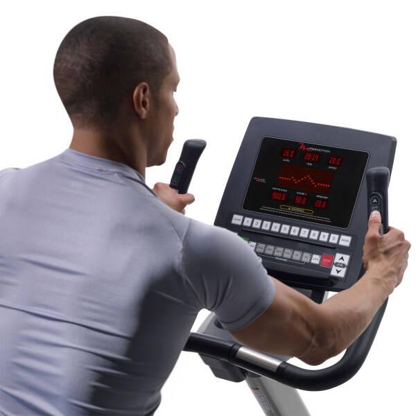 Велотренажёр оснащён легкочитаемым светодиодным дисплеем, который позволяет отслеживать параметры тренировки. На дисплее отображается следующая актуальная информация: сопротивление тренажёра, скорость, продолжительность тренировки, пройденное расстояние, частота пульса и количество сожженных калорий.