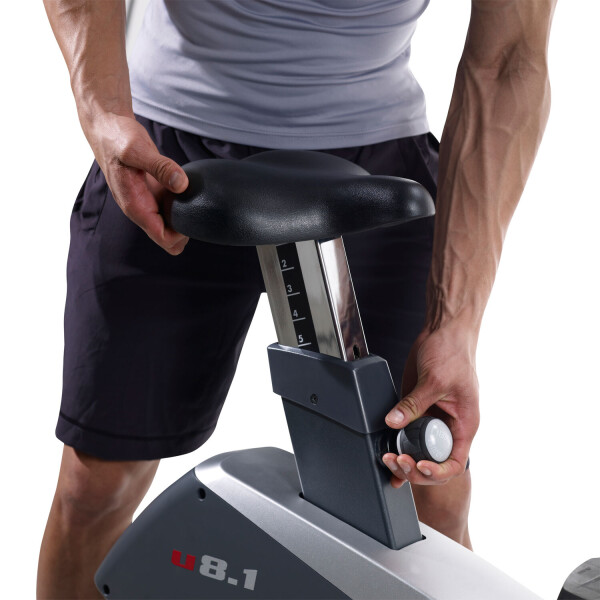 Велотренажёр оборудован сиденьем, положение которого можно подстроить под свои индивидуальные параметры при помощи регулировочного штифта, что обеспечивает удобную работу с тренажёром для людей разного роста и телосложения.