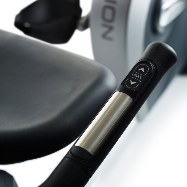 Велотренажёр оборудован сиденьем, положение которого можно подстроить под свои индивидуальные параметры при помощи регулировочного рычага. Отодвиньте рычаг в сторону, после чего установите сиденье в удобное для вас положение и верните регулировочный рычаг на место.