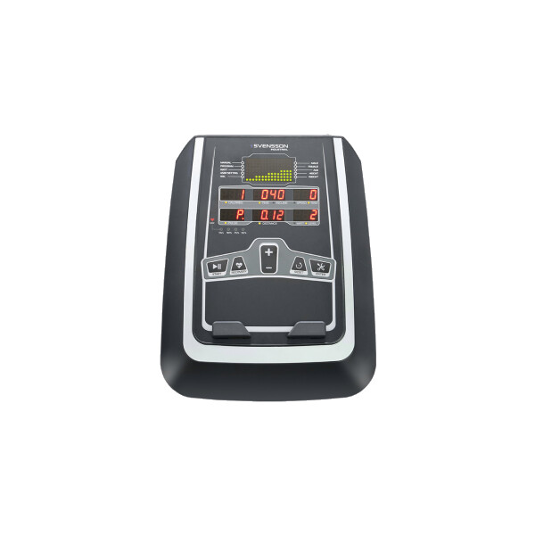 Тренировочный компьютер представлен дисплеем профессионального уровня. Основной экран использует светодиоды (LED), а 6 дополнительных экранов работают на буквенно-цифровых жидких кристаллах (LCD). На экран компьютера выводятся все основные данные - профиль тренировки, скорость, дистанция, количество оборотов в минуту, калории и пульс. При желании можно воспользоваться одной из 12 предустановленных программ, рассчитанных на снижение веса, тренировку выносливости, скоростных качеств, реабилитацию и т.д. Помимо предустановленных программ, можно воспользоваться самостоятельно регулируемым ручным режимом, а также создать собственную программу в одном из 5-х пользовательских режимов. 4 пульсозависимые программы отвечают за тренировку тех пользователей, которым важно контролировать верхние пределы частоты сердечного ритма.