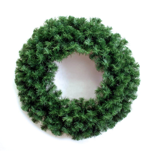 Венок Рождественский. Диаметр: 90 см. Тип хвои: ПВХ. Цвет хвои: хвоя насыщенного темно-зеленого цвета с просвечивающей "древесиной". Венок сделан из небольших еловых отростков, великолепно держит форму за счет короткой жесткой и упругой хвои.