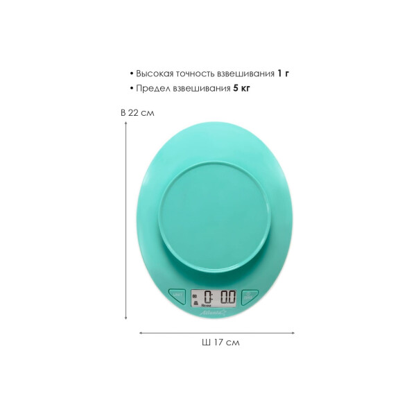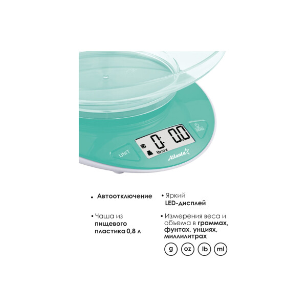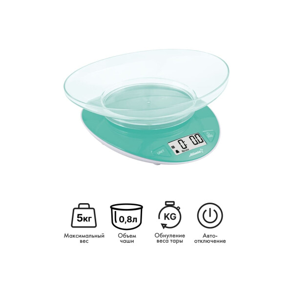 Кухонные электронные весы с чашей Atlanta ATH-6199 green обладают следующими свойствами: