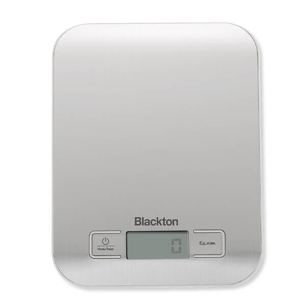 Кухонные весы Blackton KS1009 располагают понятной панелью управления, состоящей из электронных элементов. С их помощью производится выбор отображаемых единиц измерения и обеспечивается доступ к функции тарокомпенсации. Необходимая информация транслируется на функциональный дисплей в нижней части корпуса.