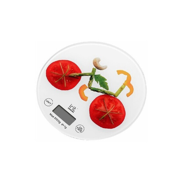 Весы кухонные Irit IR-7237 с красивой и прочной поверхностью из закаленного стекла с большим жидкокристаллическим дисплеем.