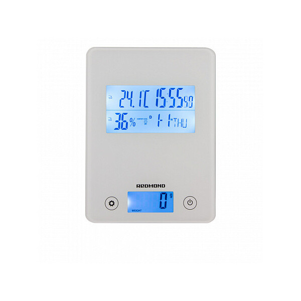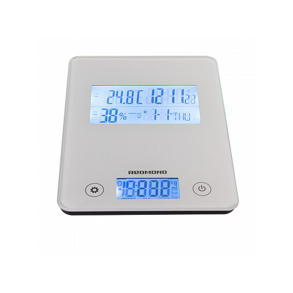 REDMOND RS-759 современный кухонный прибор для быстрого взвешивания продуктов. С устройством невероятно просто готовить по любому рецепту соблюдать пропорции ингредиентов для получения идеального результата. Кроме взвешивания RS-759 также выполняет функции календаря и часов, домашнего термометра и гигрометра, будильника.