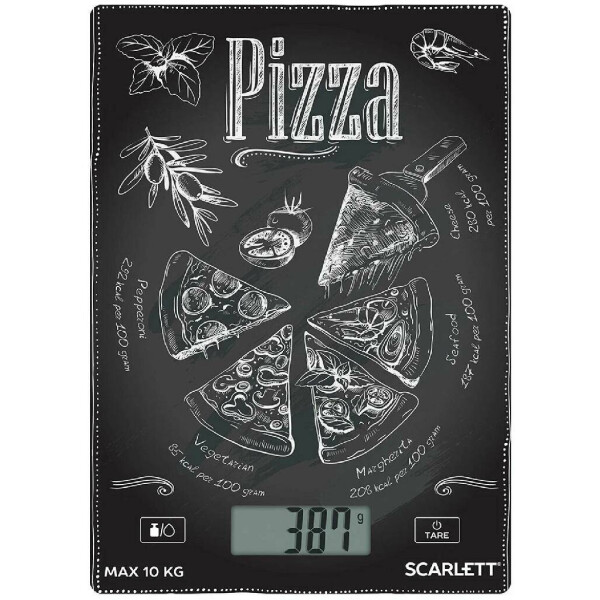 Весы SCARLETT SC-KS57P66 украшает современный принт, благодаря которому они станут заметным акцентом на вашей кухне. Устройство выдерживает нагрузку до 10 кг, цена деления составляет всего 1 г, так что вы сможете использовать эту модель и в период сезонных заготовок, и при ежедневном приготовлении блюд.