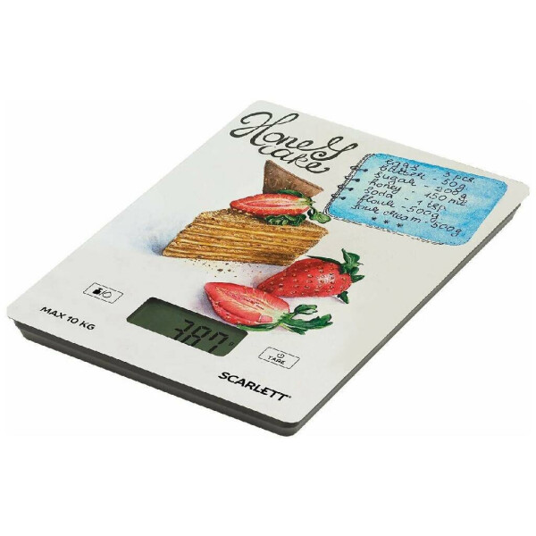 Весы SCARLETT SC-KS57P76 украшает современный принт, благодаря которому они станут заметным акцентом на вашей кухне. Устройство выдерживает нагрузку до 10 кг, цена деления составляет всего 1 г, так что вы сможете использовать эту модель и в период сезонных заготовок, и при ежедневном приготовлении блюд.
