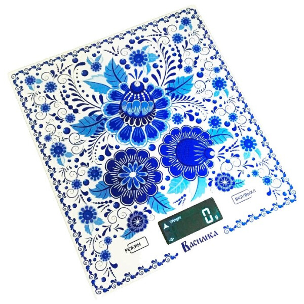 Кухонные весы Василиса ВА-005 Гжель имеют оригинальный и яркий дизайн. Они удобны в использовании и созданы для взвешивания пищевых продуктов или небольших предметов. Платформа изготовлена из упрочненного стекла. Функция сброса веса тары и обнуления позволяет последовательно взвешивать ингредиенты блюда, не учитывая массу посуды.