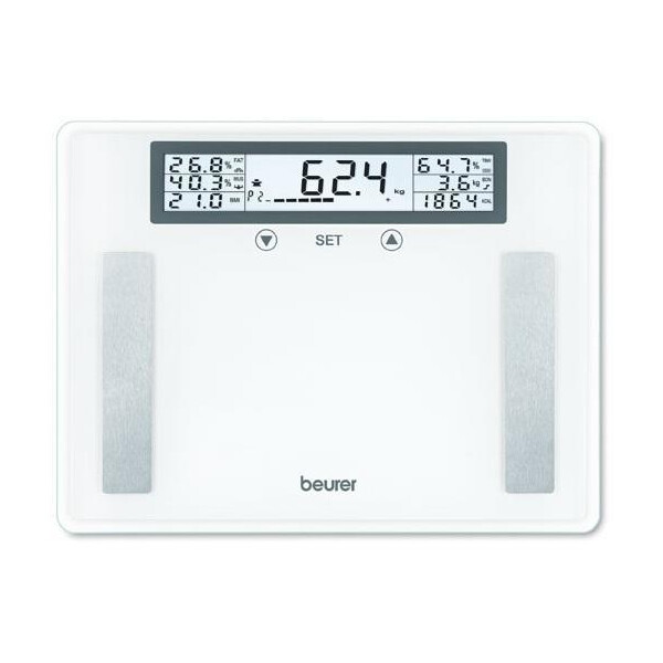 Стеклянные диагностические весы с расчетом индекса массы тела - BG 51 XXL подходят для тучных людей. Огромная платформа, сверхпрочное безопасное стекло - делают весы удобными в использовании людьми с массой тела до 200 килограмм. Весы обладают компактной формой и приятным внешним видом. Могут измерять с точностью до 100 г и имеют 5 уровней активности. Так же они помогут выяснить процентное содержание жира, мышечной массы, костной ткани и воды.