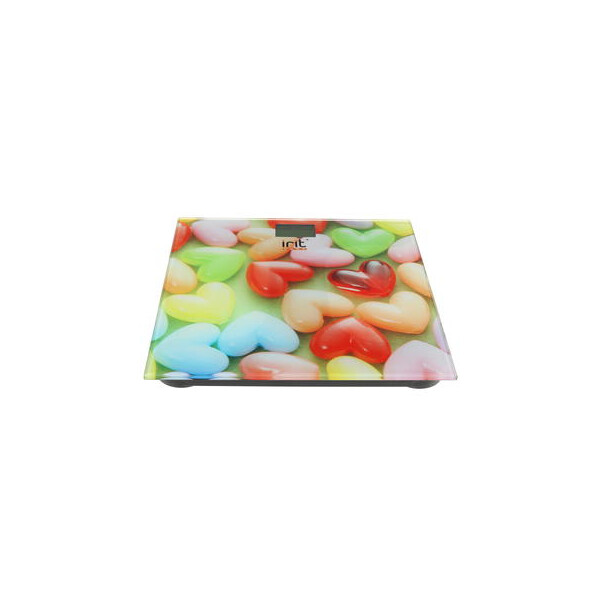 Весы Irit IR-7259 выполнены в необычном дизайнерском решении. Платформу модели украшает яркий рисунок из разноцветных сердец. Представленное устройство изготовлено из прочного закаленного стекла. Весы способны выдержать нагрузку до 180 кг, предусмотрен индикатор перегрузки. Прорезиненные ножки предотвращают скольжение устройства по полу.