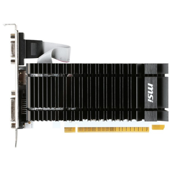 Существенным плюсом видеокарты MSI GeForce GT 730 Silent LP является возможность подсоединить к ней до двух мониторов одновременно. Для корректного подключения устройств предусмотрены видео разъемы D-SUB (VGA), DVI-D и HDMI. Комплектующее для ПК оборудовано видеопамятью типа GDDR3 объемом в 2 Гб, эффективная частота которой составляет 1600 МГц. Изготовителем видеопроцессора GeForce GT 730 является широко известный производитель NVIDIA.