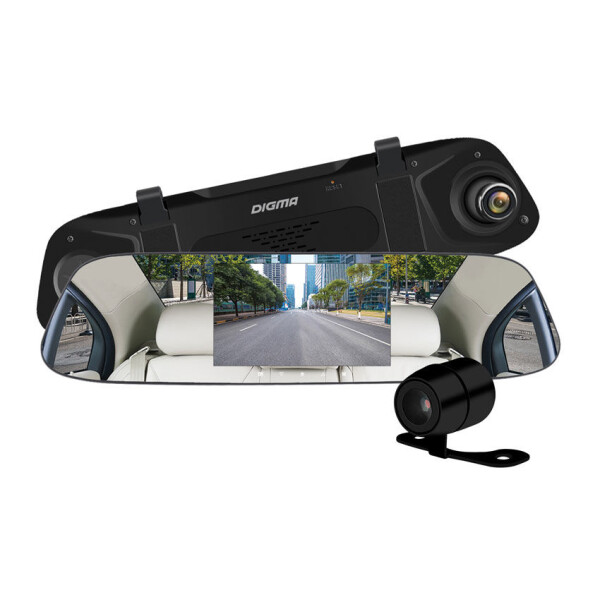 Видеорегистратор Digma FreeDrive 404 Mirror Dual выполнен в виде накладки на зеркало заднего вида, поэтому совершенно незаметен в салоне автомобиля. Устройство устанавливается на штатный аксессуар при помощи надёжных резиновых креплений.