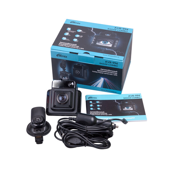 Ritmix AVR-994 также имеет встроенный модуль GPS, который не только фиксирует ваши координаты, но и поддерживает систему оповещений о камерах, не излучающих сигналов (фотокамеры контроля полосы, контроля светофоров, Автодория).