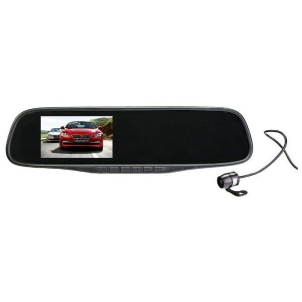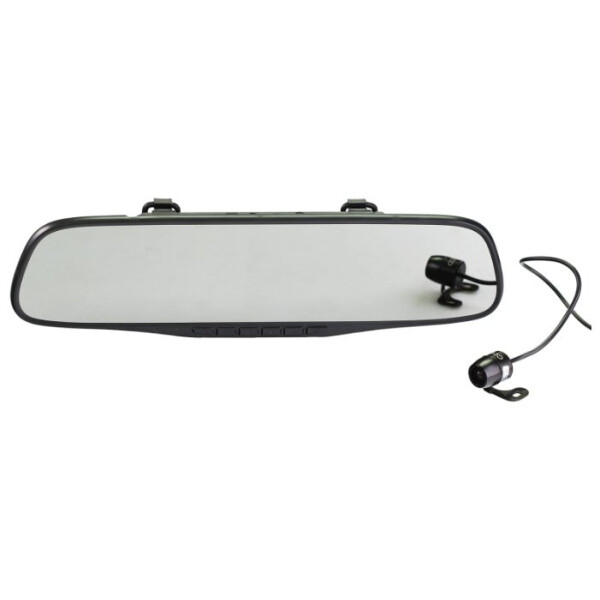 1) Наличие у зеркала 2-х видеоканалов позволяет записывать изображение одновременно с двух камер: встроенной (разрешение 1920х1080, скорость записи 30к/сек) и внешней, дополнительно подключенной камеры (разрешение 720х480). Фронтальная камера встроена в заднюю часть корпуса устройства, а задняя камера устанавливается на заднее стекло или же снаружи в районе номерного знака и соединяется с зеркалом с помощью кабеля (длина провода 6 метров).