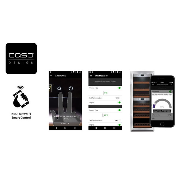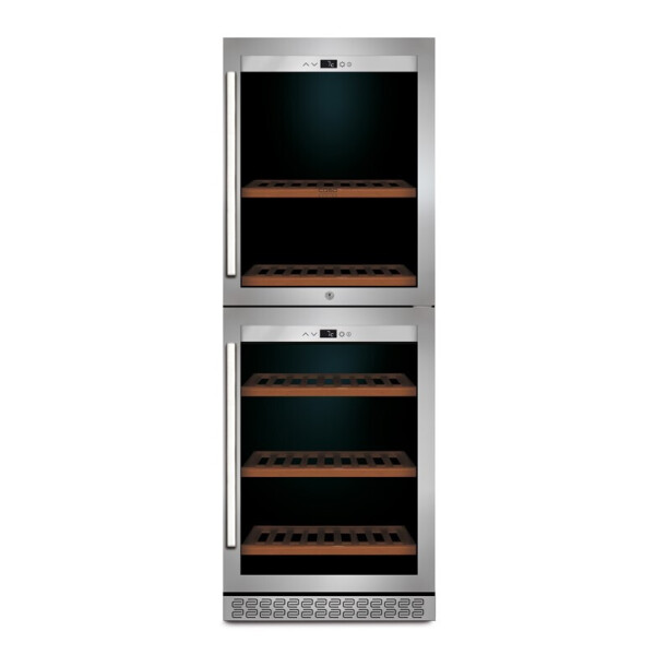 Изящный двухкамерный винный шкаф WineChef Pro 126-2D от Caso вместимостью до 126 бутылок вина можно применять как отдельно стоящую модель, так и встраивать его в нишу. И тот, и другой вариант уместен для любого интерьера. Превосходный внешний вид винного шкафа отлично дополняет включенная светодиодная подсветка с функцией отключения. Бутылки с благородным напитком содержатся в этом винном шкафу в двух зонах, в каждой из которых при помощи удобного сенсорного управления можно выставить температуру в диапазоне от 5 до 20°С. Удобно то, что для каждой зоны предусмотрен свой сенсорный дисплей. Модель товарной линейки WineChef оборудована компрессорной системой охлаждения, надежными деревянными полками, тихим компрессором и дверцами с двойным стеклом и рамами из нержавеющей стали. Есть возможность подключить винный шкаф к приложению для смартфонов и планшетов, при помощи которого можно удаленно выставлять настройки оборудования и следить за его работой.
