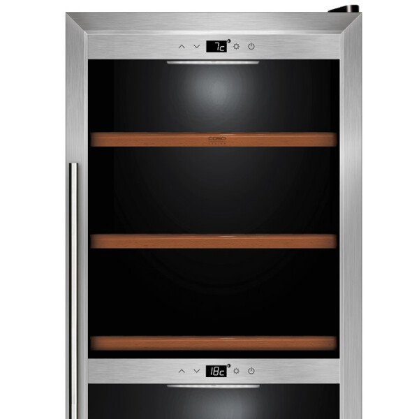 Винный шкаф WineComfort 1260 Smart от Caso представляет собой модель с лаконичным дизайном, с возможностью хранения в своем внутреннем пространстве до 126 бутылок вина стандартной емкости. В винном шкафу благородный напиток может храниться в двух зонах, и в каждой из них температура задается в широком диапазоне – от 5 до 20°С. Для комфортного содержания винных бутылок предусмотрено все самое необходимое: удобные съемные деревянные полки, приятная на глаз светодиодная подсветка, легкое и простое в использовании сенсорное управление. Кроме того, модель оснащена тихо работающим компрессором, активным вентилятором (в каждой зоне присутствует свой вентилятор) и современной разработкой – приложением WiFi Smart Control, благодаря которому управлять работой винного шкафа можно удаленно. Корпус этой качественной и надежной модели предусматривает улучшенную теплоизоляцию, а дверца модели включает в себя тройное стекло с фильтром, защищающим содержимое винного шкафа от ультрафиолета.