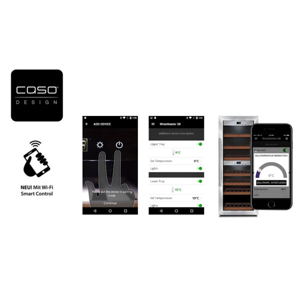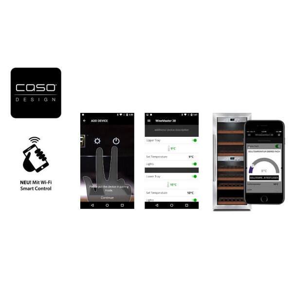Винный шкаф WineComfort 380 Smart от Caso – это модель, в которой созданы идеальные условия для хранения вина. Оборудование вмещает в себя до 38 винных бутылок, содержащихся на съемных деревянных полках в двух зонах с температурным диапазоном от 5 до 20°С. Данная модель – оптимальный вариант для истинных ценителей благородного напитка. Выгодно демонстрировать ее содержимое позволяет LED-подсветка, которую при необходимости можно отключать. Винный шкаф включает в себя такие важные элементы, как сенсорное управление, компрессорная система охлаждения. Корпус модели с улучшенной теплоизоляцией выполнен в серебристом цвете. Дверца с тройным стеклом оснащена надежным UV-фильтром. Обе зоны для хранения вина содержат активный вентилятор, что благоприятно сказывается на содержании напитка. Управлять рабочими параметрами винного шкафа дистанционно можно при помощи приложения для планшетов и смартфонов с Android или iOS.
