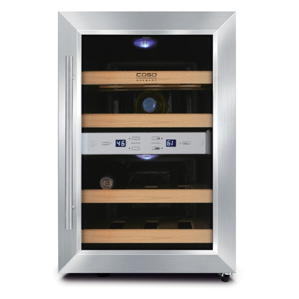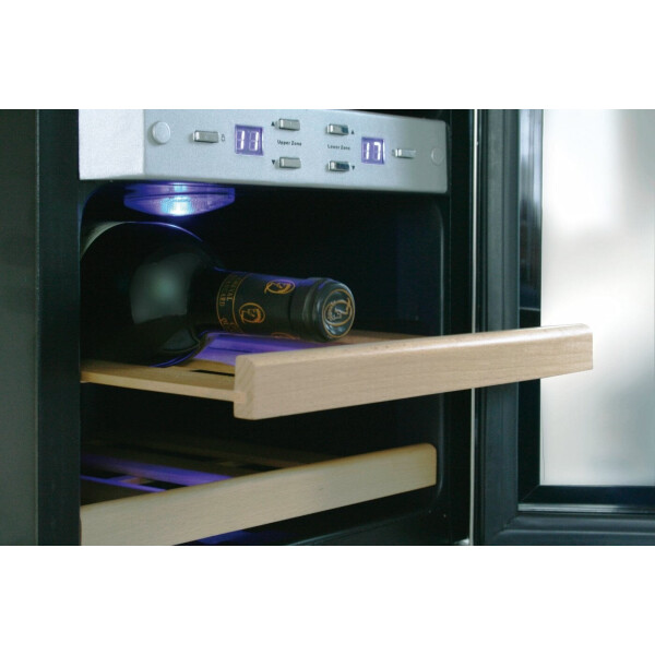 Винный термоэлектрический холодильник. Система охлаждения на основе принципа Пельтье (без компрессора, что исключает вибрации). Температура внутри зависит от температуры окружающей среды, количества бутылок, а также выбранной температуры.