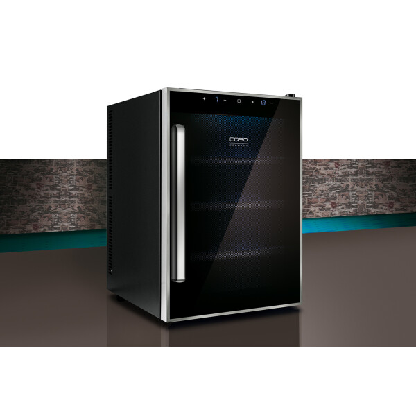 Винный шкаф CASO WineDuett Touch 12 с несколькими охлаждающими зонами рассчитан на 12 бутылок. Черный металлический корпус с тонированной стеклянной дверцей надежно защитит содержимое шкафа от попадания ультрафиолета.
