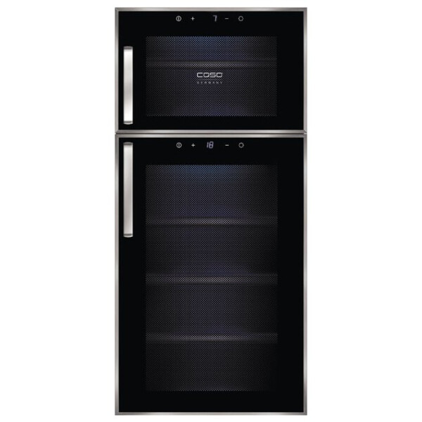 Винный шкаф – это разновидность холодильного оборудования, предназначенная для правильного хранения разных сортов вина. Модель CASO WineDuett Touch 21 разработана для размещения 21 бутылки. Специально для этого она оборудована двумя зонами, каждая из которых имеет собственную дверцу. Наличие высокопрочного металлического корпуса и стекла, оснащенного специальным фильтром, обеспечивает надежную защиту от термических воздействий и ультрафиолетовых лучей.