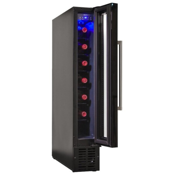 Компактный и элегантный винный шкаф Cold Vine C7-KBT1 на 7 бутылок вина с одной температурной зоной. Модель оснащена внутренним вентилятором для равномерного доступа холодного воздуха ко всем полкам шкафа и внешним вентилятором для быстрого эффективного охлаждения компрессора. Комплектуется холодильник C7-KBT1 шестью металлическими полками. В его верхней части находится электронная панель, с помощью которой пользователь выбирает необходимый температурный режим работы аппарата. На ней расположены кнопки для регулировки температуры и включения освещения.