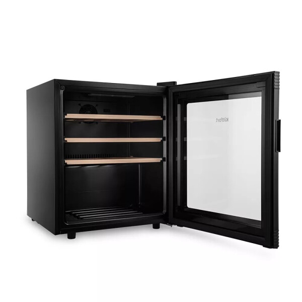 Охлаждение производится при помощи компрессора с хладагентом по принципу обычного холодильника. Дверца винного шкафа выполнена из тёмного стекла, оно поглощает видимый свет и УФ-излучение. В передней части дверцы расположена панель управления со светодиодным дисплеем.