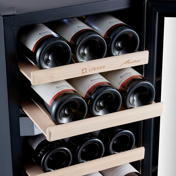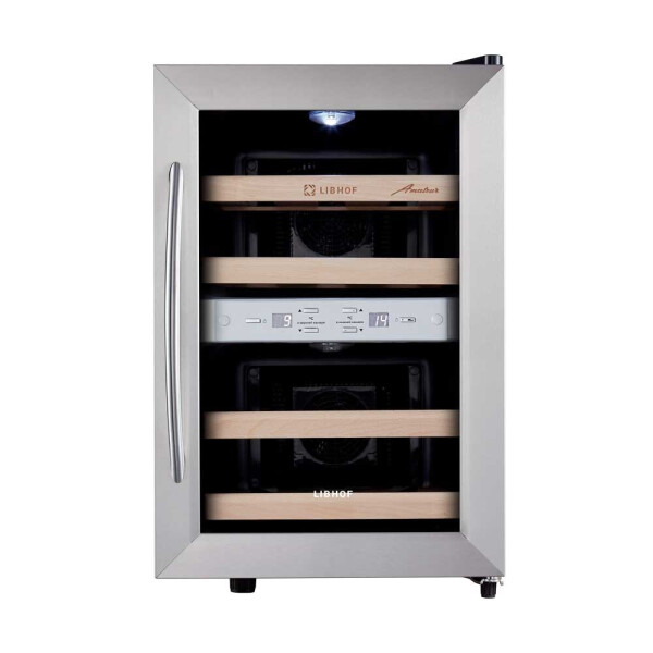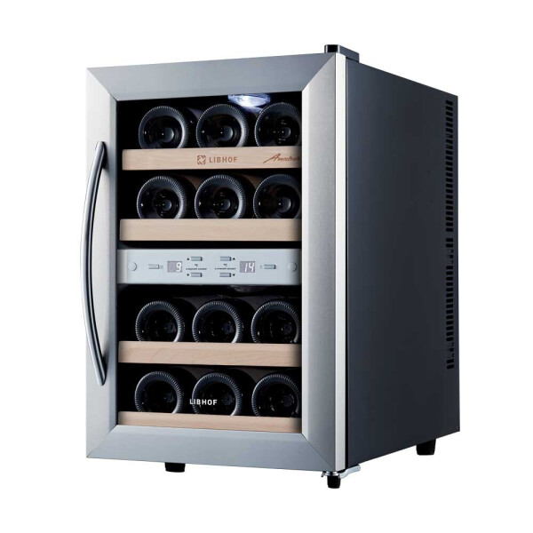 Шкаф для вина Libhof AFD-12 работает по термоэлектрическому принципу, который основан на использовании эффекта Пельтье. Основное преимущество данной модели отсутствие губительных для бутылок с вином вибраций.