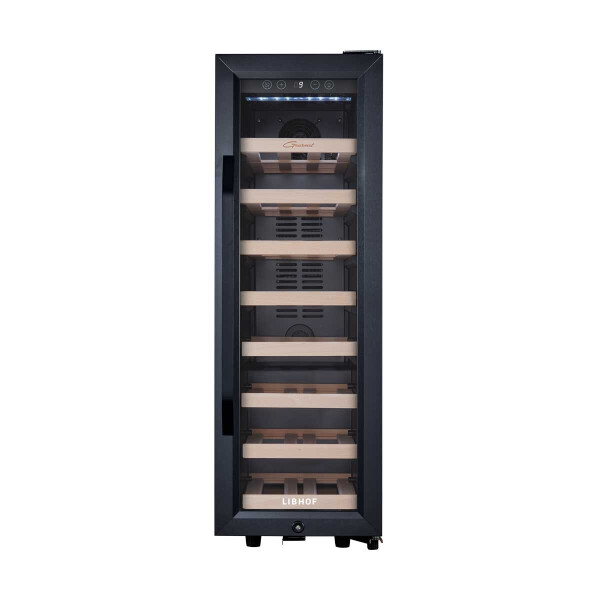 Шкаф для вина Gourmet GZ-21 обеспечит для Вашей коллекции условия хранения, аналогичные винному погребу. Лаконичная модель черного цвета отлично дополнит интерьер кухни, бара или гостиной, а стеклянная дверца и внутренняя подсветка позволят выбрать вино, не открывая шкаф. Для охлаждения винных бутылок используется современная компрессорная система, обеспечивающая минимальный уровень вибраций. Температурный режим в диапазоне от +5C до +18C с минимальным отклонением под управлением высокоточных электронных датчиков предназначен для хранения белых и красных вин. На полках из массива бука не образуется конденсат, что исключает вредную для этикеток повышенную влажность. Для защиты от детей предусмотрен замок на дверце.