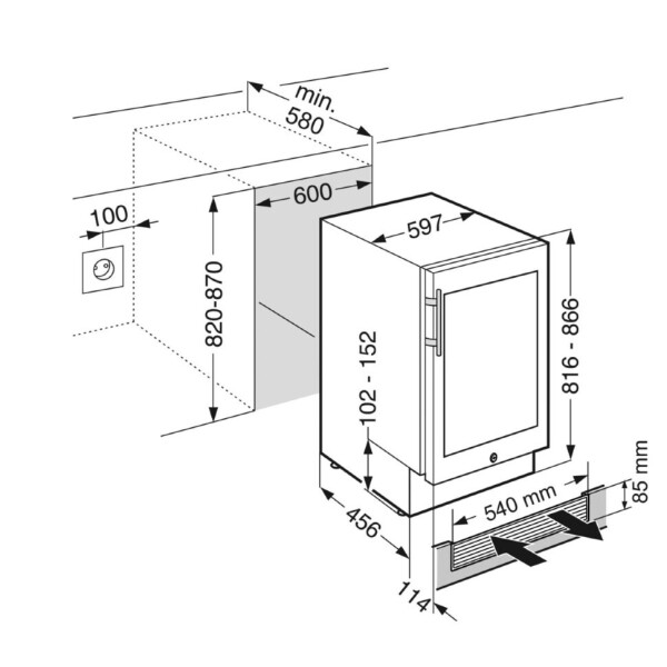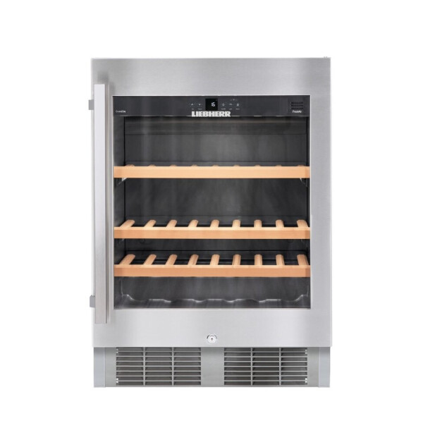 Винный шкаф Liebherr UWKes 1752 - монотемпературный шкаф, встраиваемый под столешницу, с одной температурной зоной. Интегрированное в корпус UWKes 1752 LED-освещение позволяет успешно презентовать винную коллекцию. Воздушный фильтр на основе активированного угля устраняет вредные примеси из воздуха. При необходимости его легко заменить.