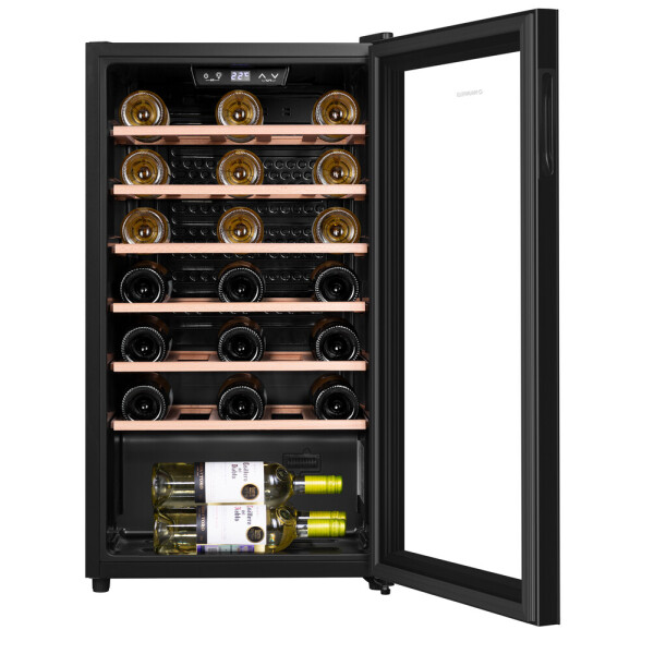 Широкий температурный диапазон винного шкафа (от 5 C до 20 C) позволит хранить красные, белые и игристые вина, а также подготавливать их к подаче.