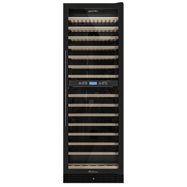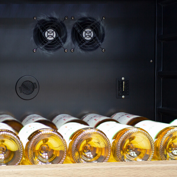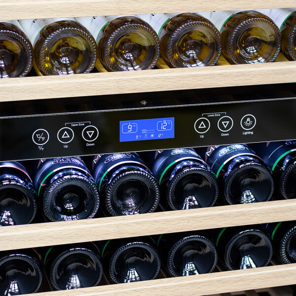Компрессорный винный шкаф Meyvel MV160-KBT2 обладает большой вместимостью и способен разместить до 160 бутылок. Располагаются они на полках из массива бука. Внутреннее пространство шкафа разделено на 2 температурные зоны с возможностью настраивать каждую из них: диапазон нижней зоны от +10C до +18C, а верхней - от + 5C до +10C. Холодильник поддерживает влажность в диапазоне 60-80%, как в настоящем винном погребе.
