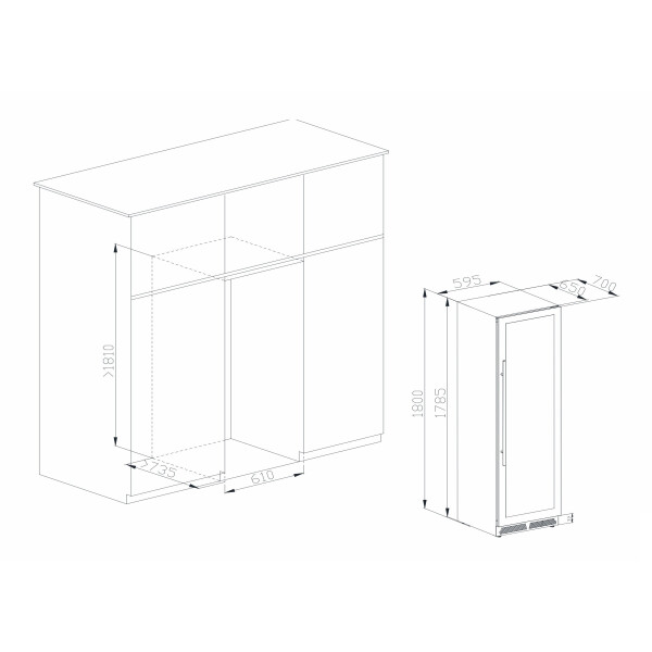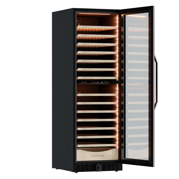 Винный шкаф предназначен для профессионального и длительного хранения различных сортов вин (до 174 бутылок типа Бордо). Он так же оснащен дверью с защитой от ультрафиолетовых лучей и поддерживает влажность в диапазоне 60-80%, как в настоящем винном погребе.