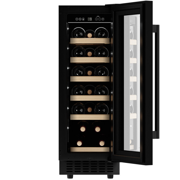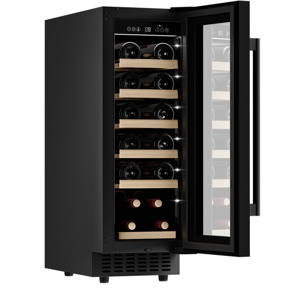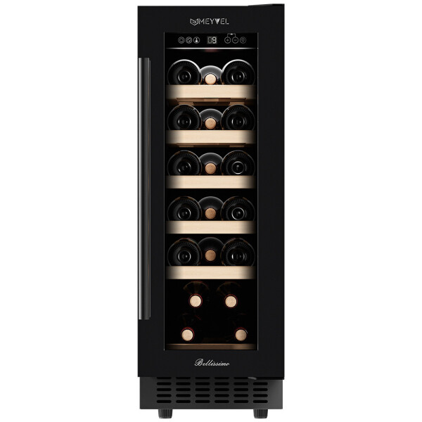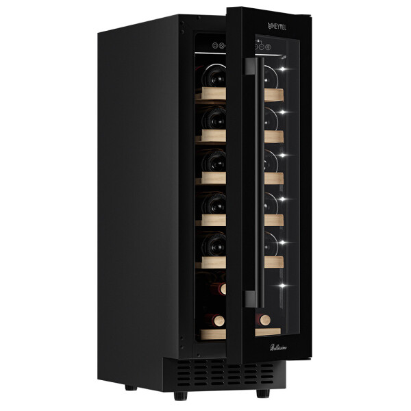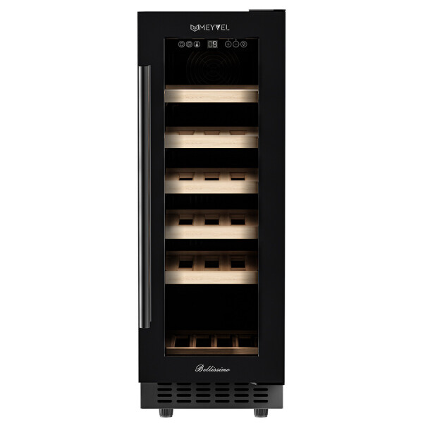 Компрессорный винный шкаф Meyvel MV18-KBT1 обладает большой вместимостью и способен разместить до 19 бутылок. Располагаются они на полках из массива бука. Внутреннее пространство шкафа имеет возможность настраивать температуру в диапазоне от + 5C до +18C. Холодильник поддерживает влажность в диапазоне 60-80%, как в настоящем винном погребе.