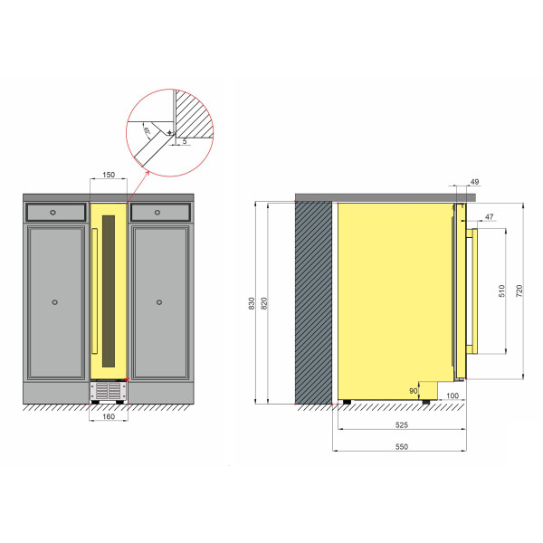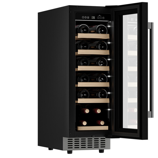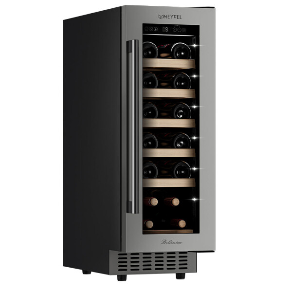 Компрессорный винный шкаф Meyvel MV19-KST1 обладает оптимальной вместимостью и даёт возможность разместить до 19 бутылок стандартного типа Бордо (0,75 л). Располагаются они на выдвижных полках из дерева. Внутреннее пространство шкафа поддерживает комфортную для вина температуру от +5C до +20C. Так же, эта модель поддерживает влажность в диапазоне 60-80%, как в настоящем винном погребе.