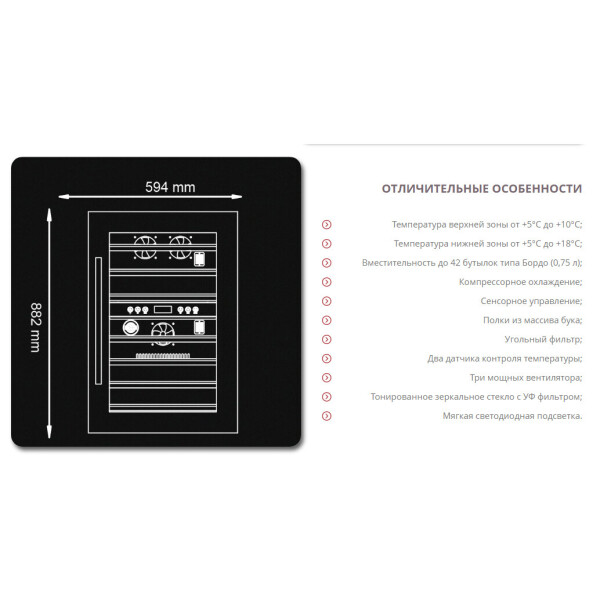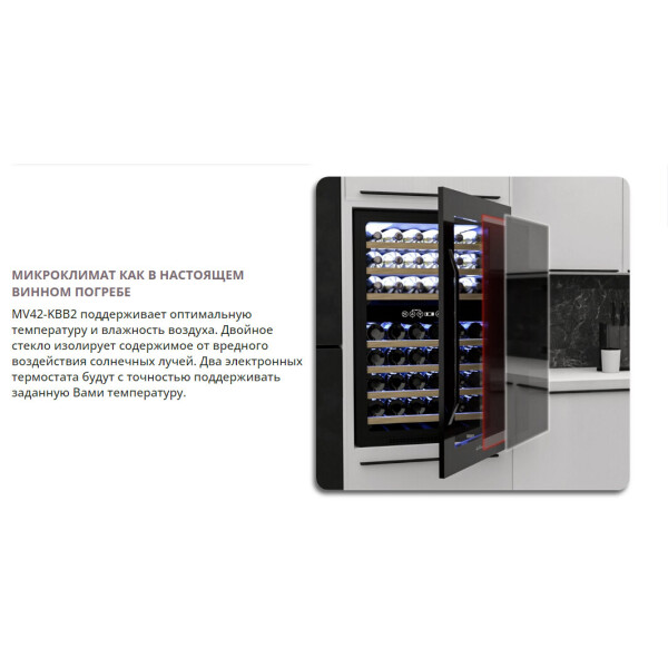 Винный шкаф Meyvel MV42-KBB2 имеет привлекательный внешний вид, сочетающий в себе неподвластное времени очарование натуральных материалов с высокотехнологичными системами хранения. Винный холодильник Meyvel MV42-KBB2 оснащен дверью с защитой от ультрафиолетовых лучей и отлично подойдет для хранения и созревания различных сортов вин. Динамическая система охлаждения обеспечивает оптимальную температуру для вина и сохраняет необходимую влажность внутри камеры.