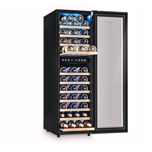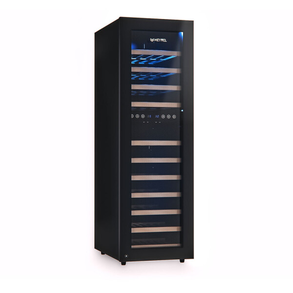 Корпус MV53-KBF2 выполнен из стали окрашенной в чёрный цвет, стекло с шелкографией полностью покрывает дверь. Современная технология освещения позволит Вам в любое время эффектно продемонстрировать Вашу винную коллекцию гостям. Каждая деталь модели гармонично дополняет друг друга, делая винный шкаф универсальным под любые стили интерьера.