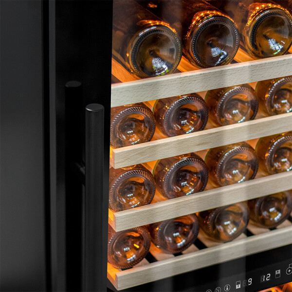 Модель MV99PRO-KBT2 имеет привлекательный внешний вид, сочетающий в себе неподвластное времени очарование натуральных материалов с высокотехнологичными системами сохранения продуктов. Винный холодильник Meyvel MV99PRO-KBT2 оснащен дверью с защитой от ультрафиолетовых лучей и отлично подойдет для хранения и созревания различных сортов вин. Динамическая система охлаждения обеспечивает оптимальную температуру для вина и сохраняет необходимую влажность внутри камеры.