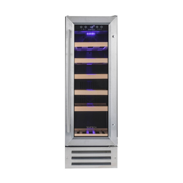 Винный шкаф Temptech Premium WPQ30SCS предназначен для охлаждения, хранения и демонстрации бутилированного вина. Модель оснащена сенсорной панелью с дисплеем для регулировки температуры и освещения, 6 выдвижными полками, фильтром с активированным углем и синей светодиодной подсветкой. Дверца выполнена из двухслойного стекла с защитой от УФ-лучей, передняя панель - из нержавеющей стали, полки - из бука.